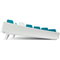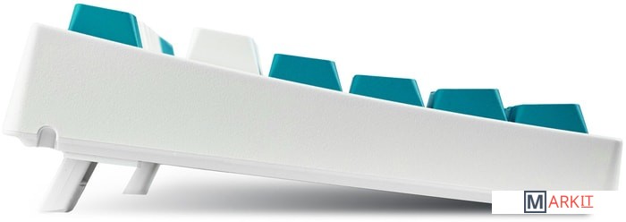 КЛАВИАТУРА БЕЗ КИРИЛЛИЦЫТип: тактильныйСила нажатия: 55 грамм (средние)Длина пути: 4 мм (2 мм до срабатывания)Данная модель выполнена в белом цвете с мятно-голубыми клавишами-модификаторами — расцветка получилась очень свежей и приятной. Клавиатура собрана добротно и монолитно, а сочетание высококачественных double-shot PBT клавиш с переключателями Cherry MX и звукопоглощающей подложки позволяет сделать печать на клавиатуре максимально тихой (насколько это возможно для механики). Mini-USB порт спрятан в центре под корпусом, а на самой клавиатуре имеются центральная и две боковые канавки под кабель.Клавиатура поддерживает сочетание клавиш для регулировки громкости и управления музыкой, также имеется возможность переключения между 6KRO и NKRO.DIP-переключатели на задней панелиДают возможность поменять местами функции кнопок Ctrl и Caps Lock, Windows и Alt, Windows и Fn или отключить Windows.Звукопоглощающая подложкаПоглощает звуки при нажатии, делая процесс печати более тихим по сравнению с обычными механическими клавиатурами.Низкопрофильные клавиши Step-Sculpture2Данные клавиши заметно ниже и имеют оптимальный угол наклона, из-за чего, по отзывам, печатать приятнее и комфортнее, чем на более высоких клавишах.Клавиатура совместима с Mac OSFN-слой работает (кроме клавиш F6, F8, F9), а поменять местами клавиши-модификаторы можно в системных настройках. Проверено с MAC OS 10.13Функция Full N-key Rollover по USB (NKRO)Позволяет нажимать одновременно неограниченное количество клавиш. Для печати идеально подойдет как 6KRO, так и NKRO, независимо от вашей скорости. Для игр NKRO будет плюсом и неважно, нажимаете ли вы больше 6 кнопок или нет, поскольку, играя в любую игру, вы можете случайно нажать пару лишних клавиш и из-за этого клавиатура имеет шанс не среагировать на нажатие, которое вы хотели совершить изначально. Имеется возможность переключения между NKRO и 6KRO через FN сочетания.